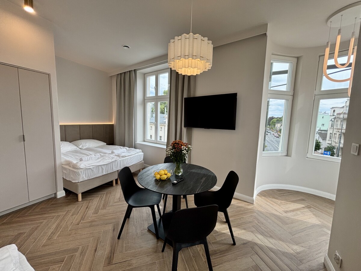 Każdy z naszych apartamentów został zaprojektowany z myślą o komforcie, funkcjonalności i estetyce. To przestrzenie, w których nowoczesny design harmonijnie łączy się z eleganckimi detalami, tworząc atmosferę sprzyjającą relaksowi i wyciszeniu. W zależności od apartamentu, oferujemy komfortowy pobyt dla 1 do 3 osób – w tym dorosłych, dzieci i niemowląt – z pełnym wyposażeniem dostosowanym do potrzeb zarówno par, jak i rodzin.